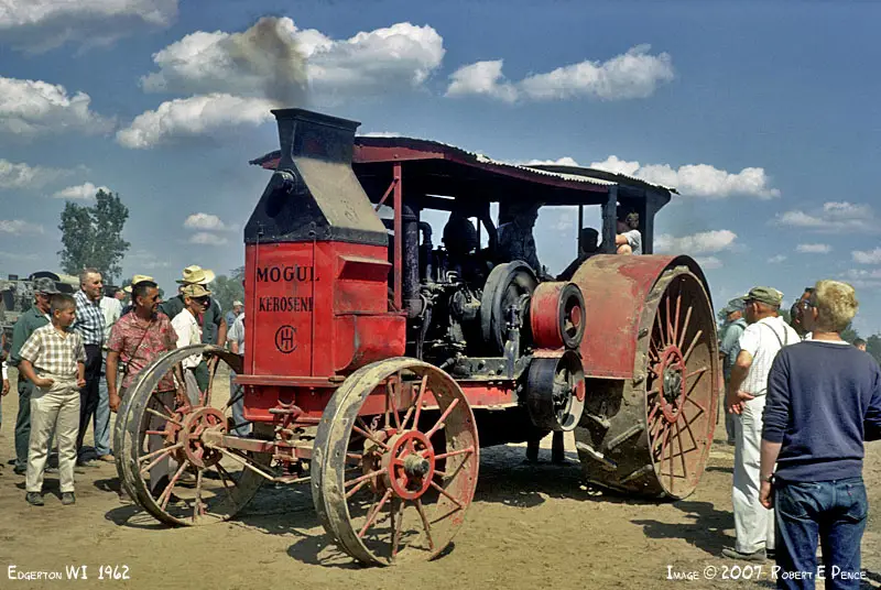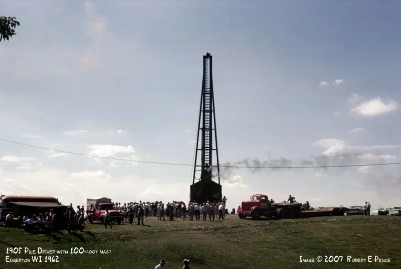 On Friday, we went to the Thresheree, a harvest festival specifically devoted to the equipment of yore. We wandered the rows of vintage tractors in vibrant reds, oranges, and greens, while a hobby-sized train circled the machine graveyard. Coal fires belched smoke and the ear-splitting pssht of steam bled from the hulking tanks of towering ironclad hulks; mechanical dragons with bellies of pitch and forked iron wheels of red. Removed from the bright daylight, this place would be a steampunk nightmare. A steam-powered pile driver rhythmically clangs as a stake is driven deep into the earth.