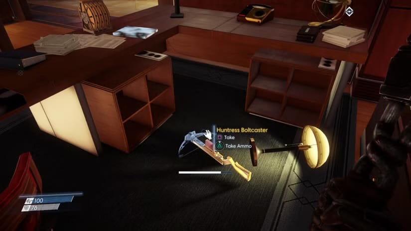 From the jump, Prey is telling you to question everything, including how you deal with enemies, which is doubly so for the Huntress Boltcaster. The Huntress is a NERF crossbow using foam darts that deal no damage. One of the first times you can encounter the weapon is in an office space with two adjacent desks, separated by cubicle walls. There's a note alluding to one employee using the Huntress to arc the foam darts over the cubicle wall to annoy their roommate. The tutorial text for the weapon also explains that the dart tips react with computer screens.